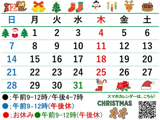 1月4日(日)は午前中9-12時(受付終了11;30)、午後お休み