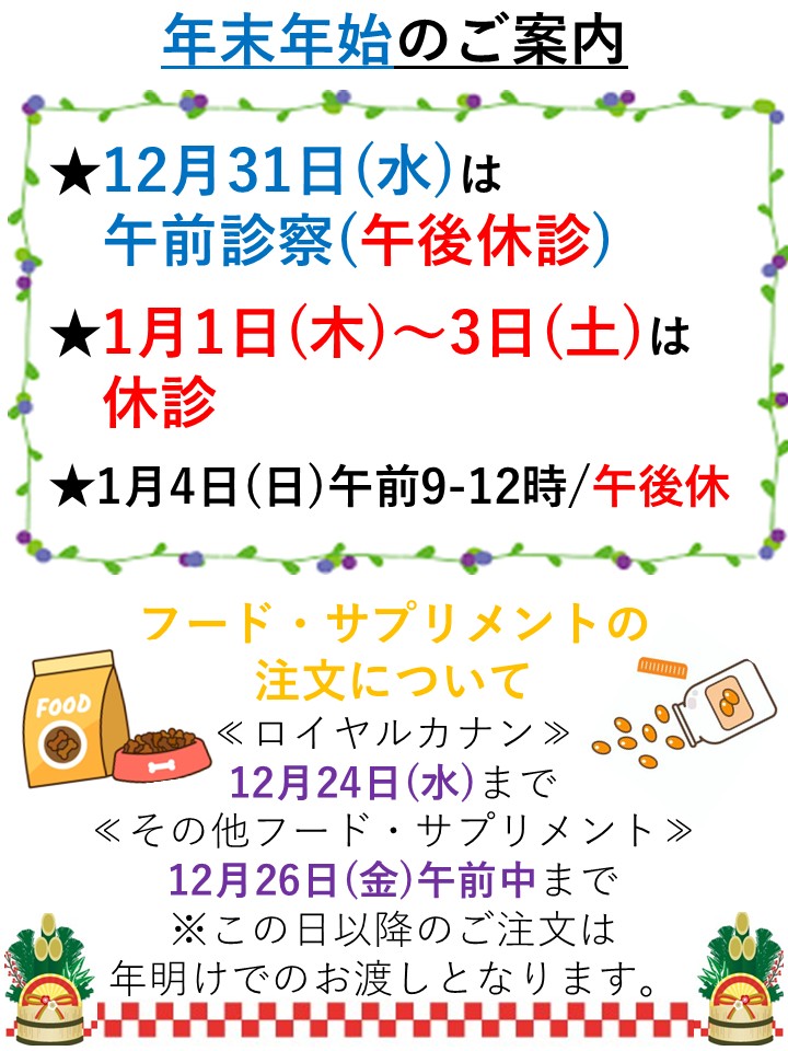 ★診察は、12月31日(水)午前9-12時(受付11;30終了)/午後休み まで行っています。